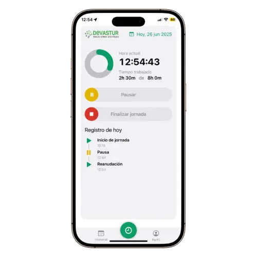 Tus empleados fichan su jornada laboral desde su móvil, con Face ID, código o patrón.